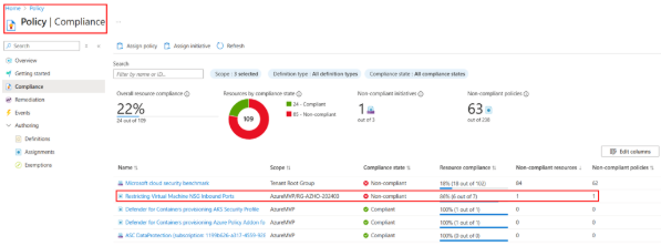 위에서 생성 및 할당한 정책의 Compliance 여부가 체크된 것을 확인할 수 있다.