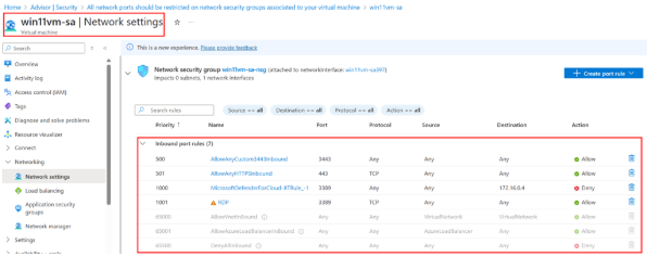 - Description: Deny inbound traffic on specific ports on the NSG associated with the virtual machine.